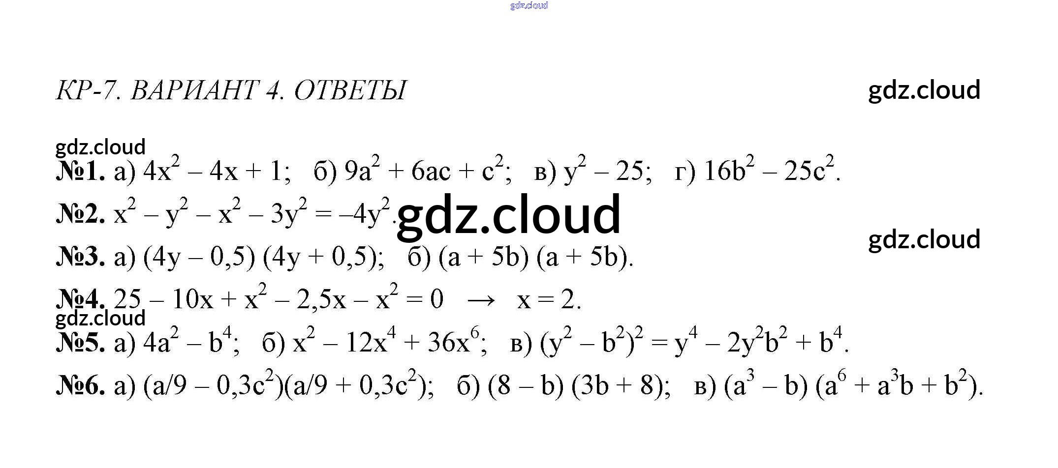 Вариант 4 Ответы к Контрольным работам по Алгебре 7 класс Дидактические материалы Звавич    Просвещение
