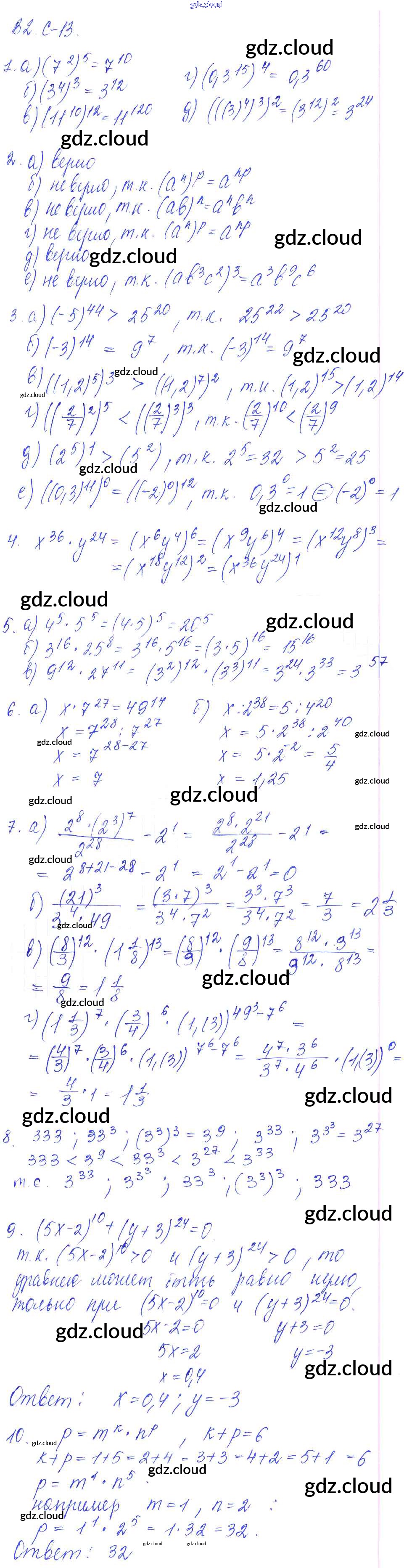 Ср-13 Ответы к Самостоятельным работам по Алгебре 7 класс Дидактические материалы Звавич УМК   Экзамен
