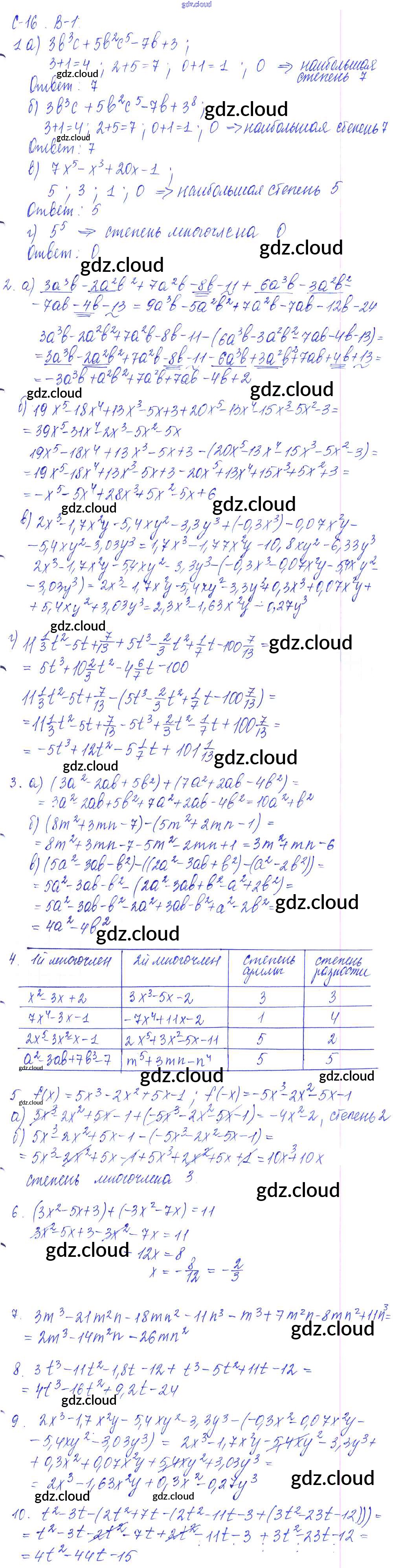 Ср-16 Ответы к Самостоятельным работам по Алгебре 7 класс Дидактические материалы Звавич УМК   Экзамен