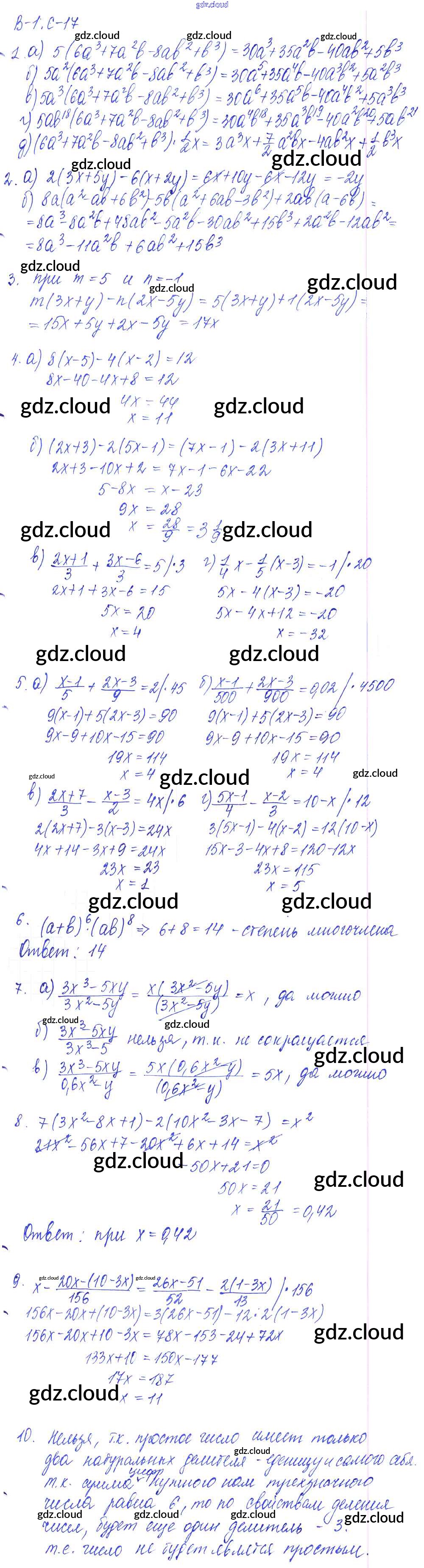 Ср-17 Ответы к Самостоятельным работам по Алгебре 7 класс Дидактические материалы Звавич УМК Экзамен