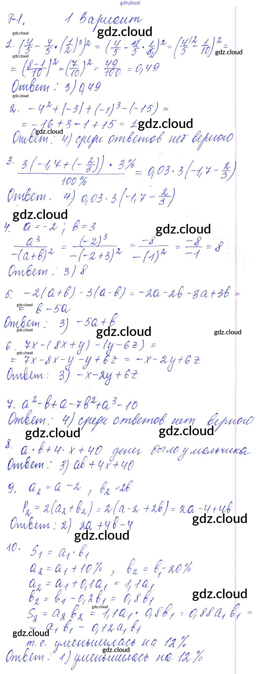 Ответ на задание Вариант 1 Дидактические материалы Алгебра за 7 (седьмой) класс Звавич, Дьяконова УМК 2018
