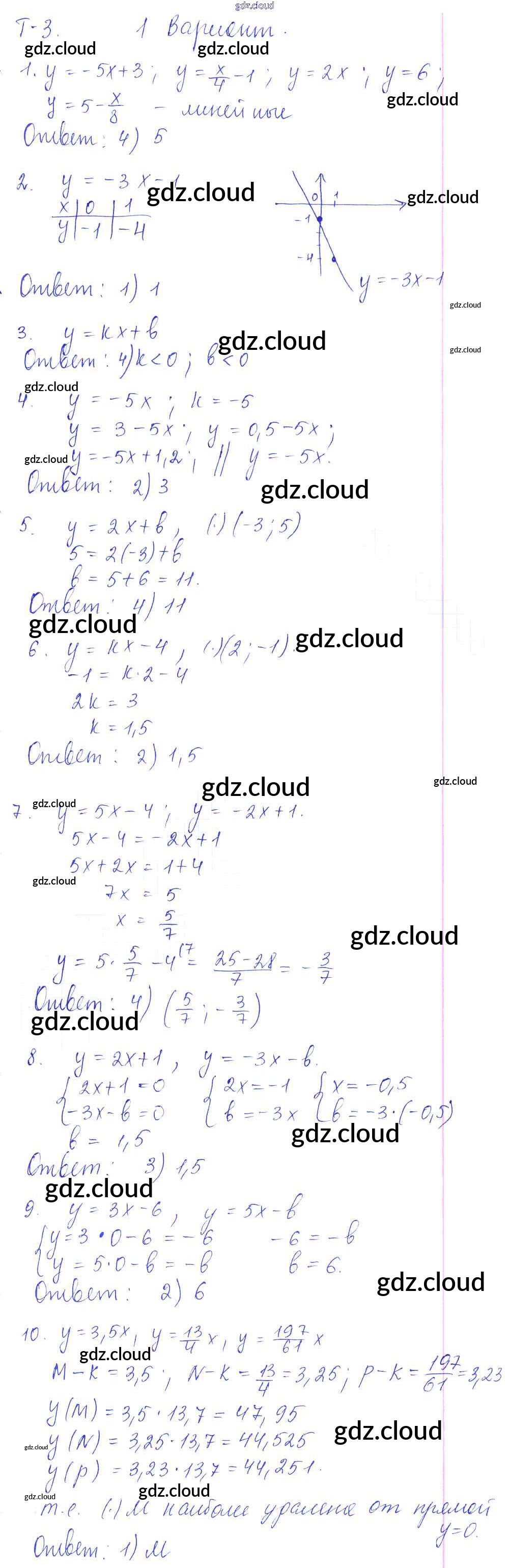 Тест 3 Ответы к Тестам по Алгебре 7 класс Дидактические материалы Звавич УМК   Экзамен