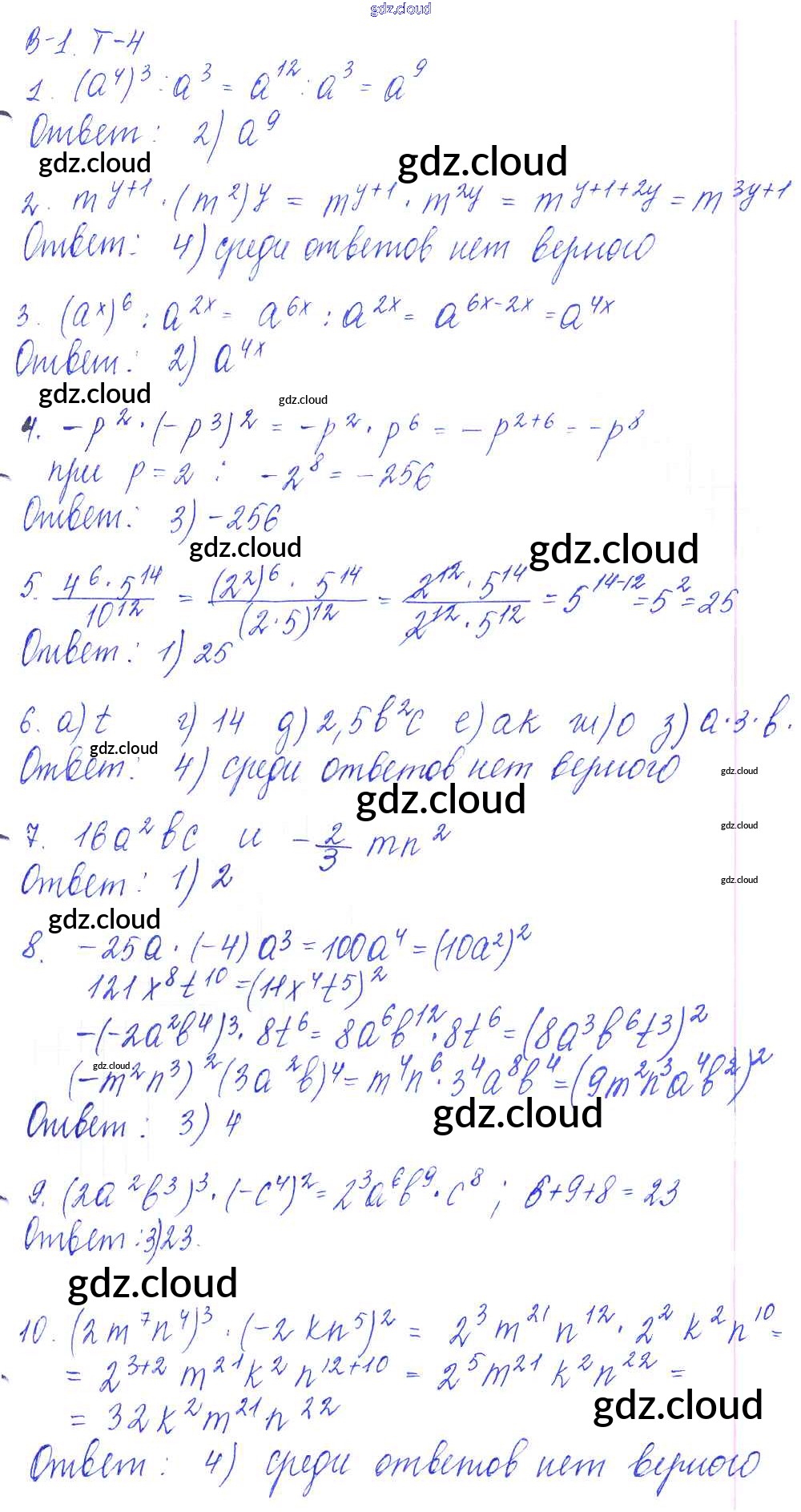 Тест 4 Ответы к Тестам по Алгебре 7 класс Дидактические материалы Звавич УМК   Экзамен