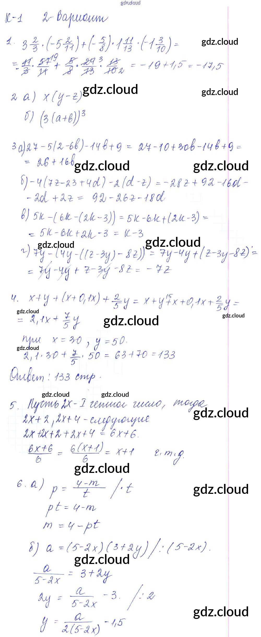 КР-1 Ответы к Контрольным работам по Алгебре 7 класс Дидактические материалы Звавич УМК   Экзамен