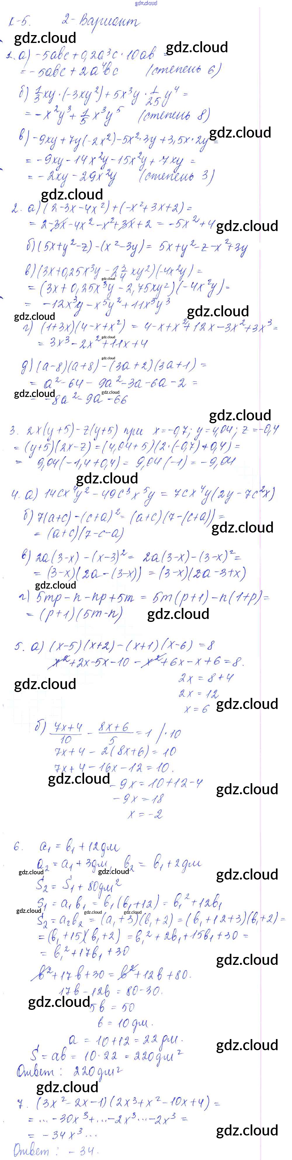 КР-5 Ответы к Контрольным работам по Алгебре 7 класс Дидактические материалы Звавич УМК Экзамен