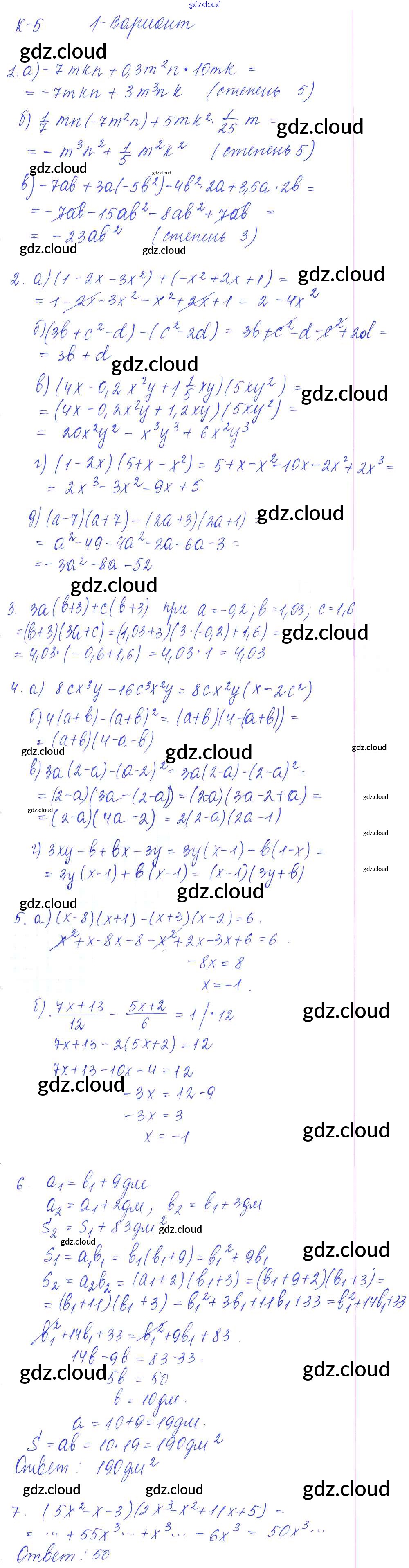 КР-5 Ответы к Контрольным работам по Алгебре 7 класс Дидактические материалы Звавич УМК Экзамен