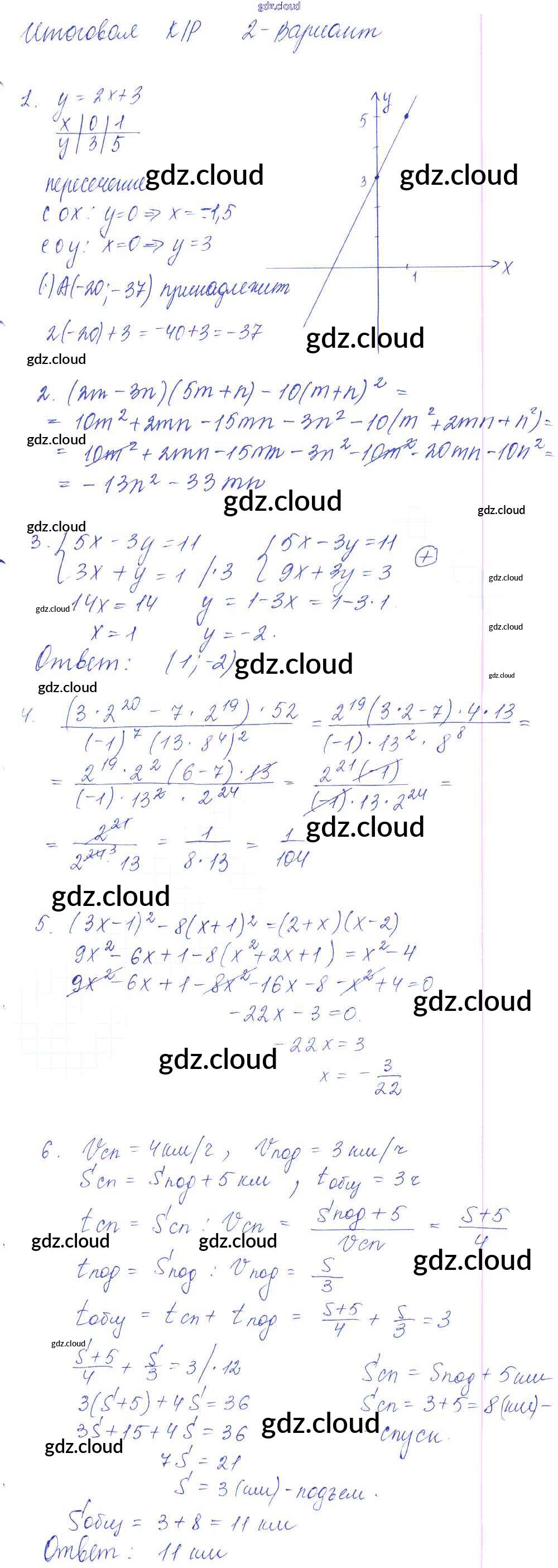 Итоговая контрольная работа Ответы к Контрольным работам по Алгебре 7 класс Дидактические материалы Звавич УМК Экзамен