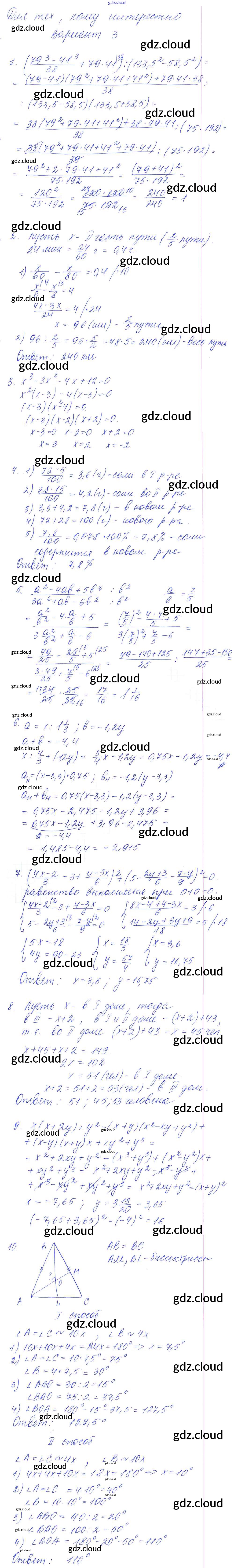 Ответ на задание Вариант 3 Дидактические материалы Алгебра  за 7 (седьмой) класс Звавич, Дьяконова УМК  2018