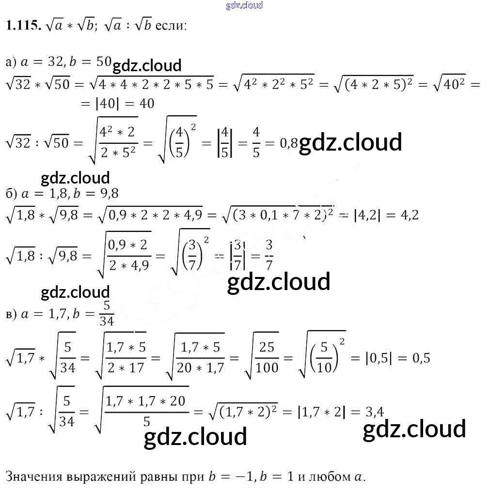 Ответ на задание 1.115 Учебник Алгебра за 8 (восьмой) класс Арефьева, Пирютко 2018 ФГОС онлайн и без номера телефона.