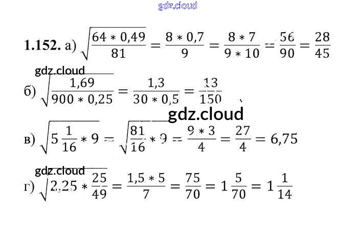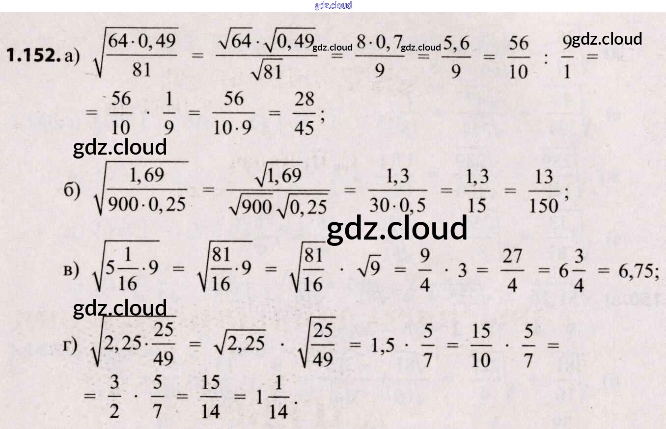 Ответ на задание 1.152 Учебник Алгебра за 8 (восьмой) класс Арефьева, Пирютко 2018
