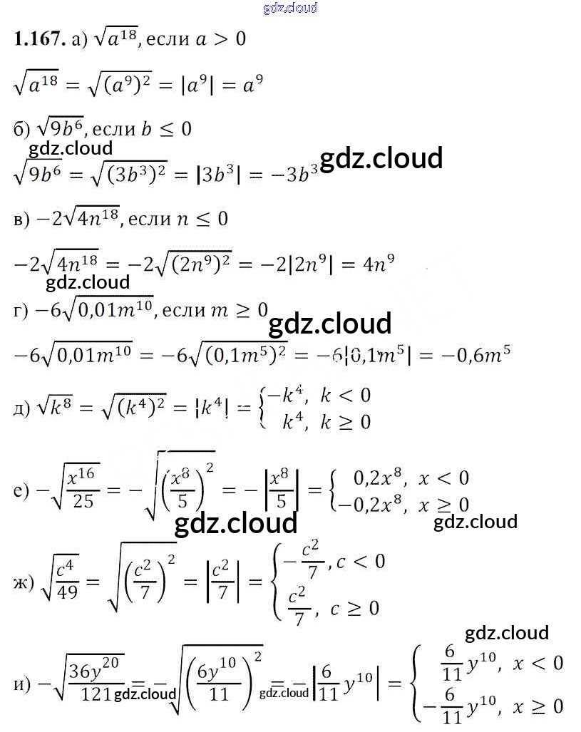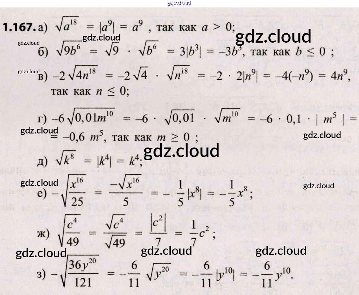 Ответ на задание 1.167 Учебник Алгебра за 8 (восьмой) класс Арефьева, Пирютко 2018