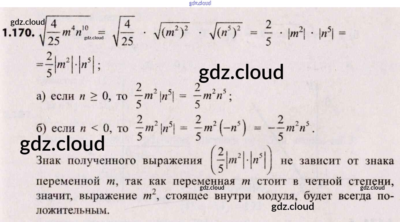 Ответ на задание 1.170 Учебник Алгебра за 8 (восьмой) класс Арефьева, Пирютко 2018