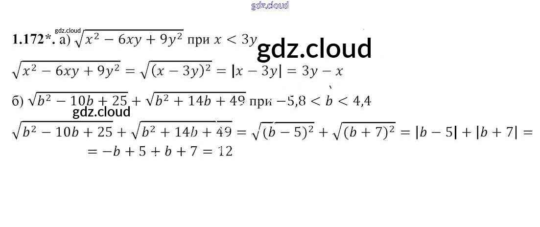 Ответ на задание 1.172 Учебник Алгебра за 8 (восьмой) класс Арефьева, Пирютко 2018