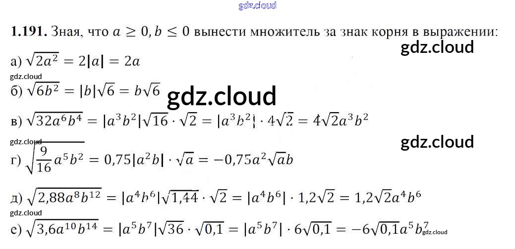 Ответ на задание 1.191 Учебник Алгебра за 8 (восьмой) класс Арефьева, Пирютко 2018 ФГОС онлайн и без номера телефона.