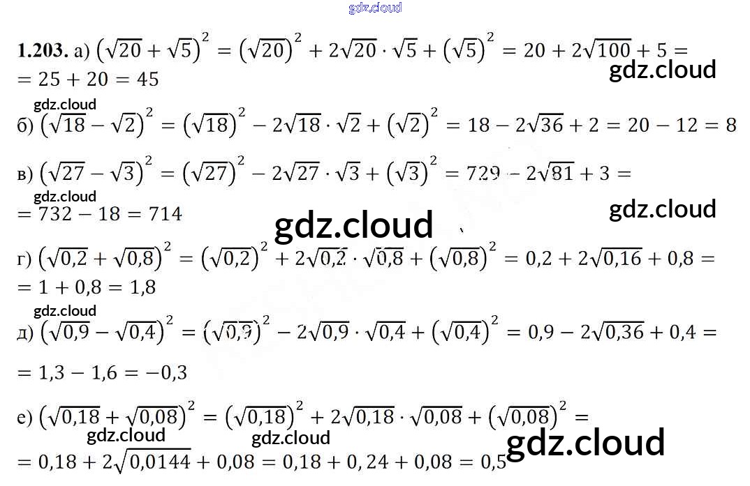 Ответ на задание 1.203 Учебник Алгебра за 8 (восьмой) класс Арефьева, Пирютко 2018 ФГОС онлайн и без номера телефона.