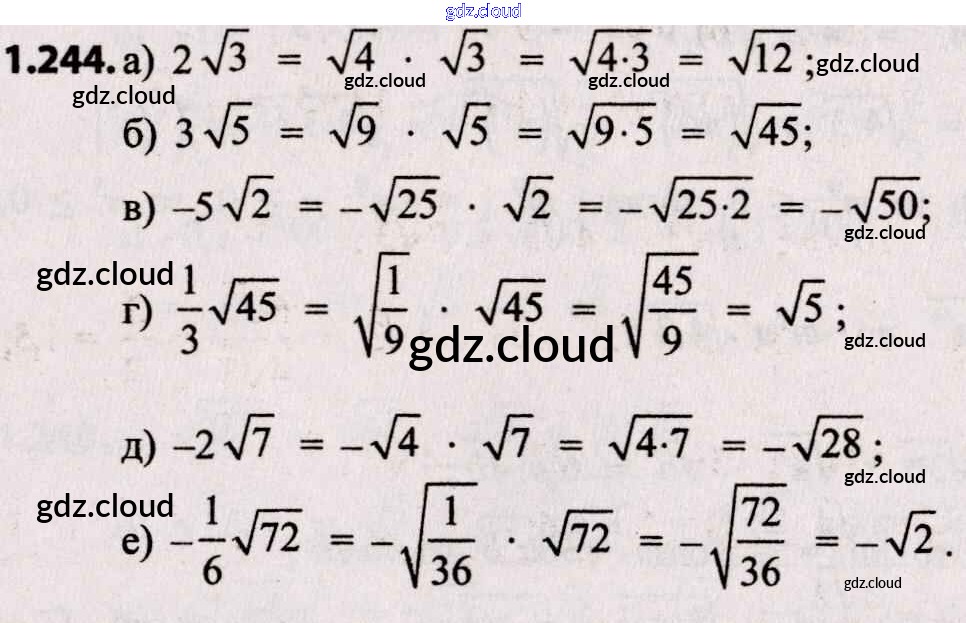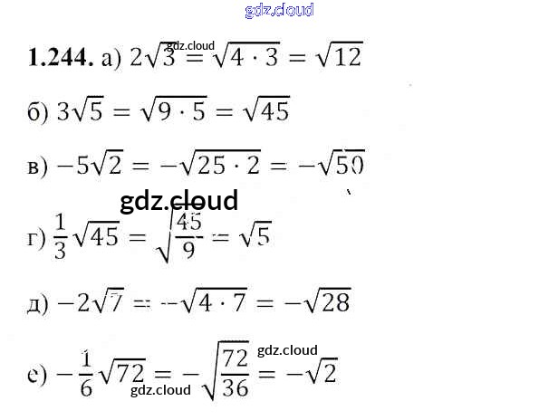 Ответ на задание 1.244 Учебник Алгебра за 8 (восьмой) класс Арефьева, Пирютко 2018
