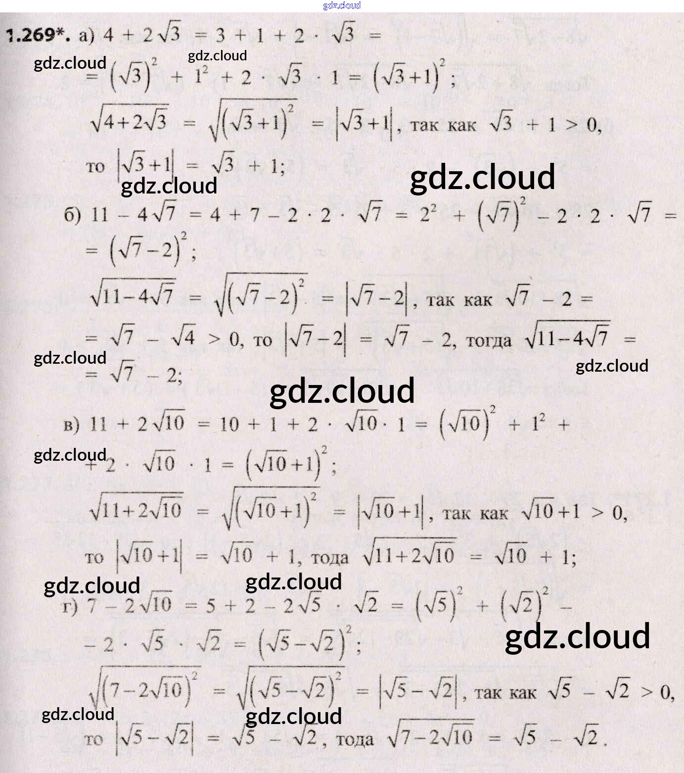 Ответ на задание 1.269 Учебник Алгебра за 8 (восьмой) класс Арефьева, Пирютко 2018