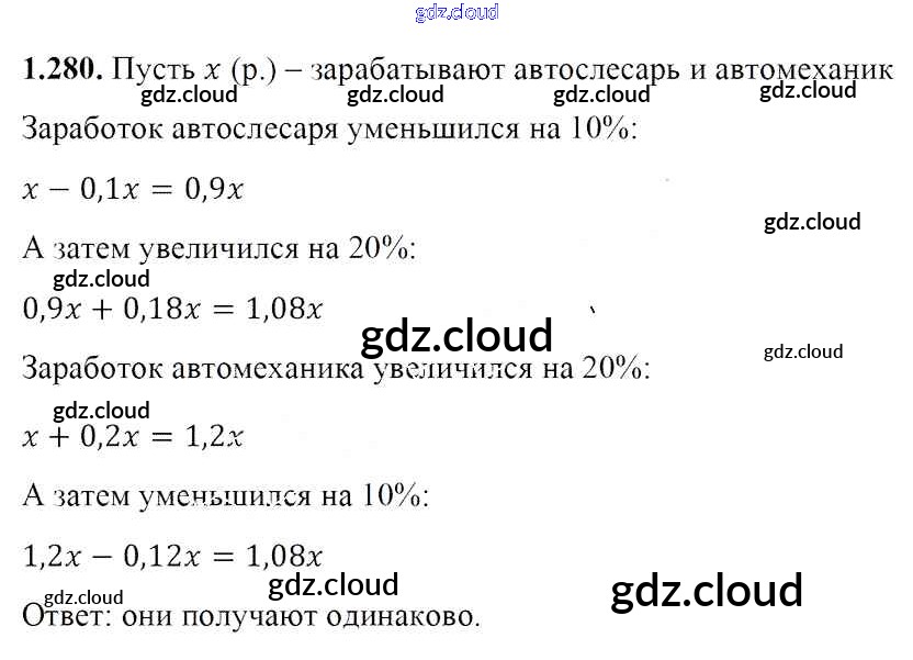 Ответ на задание 1.280 Учебник Алгебра за 8 (восьмой) класс Арефьева, Пирютко 2018