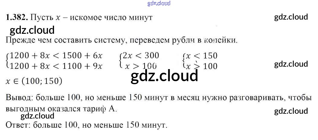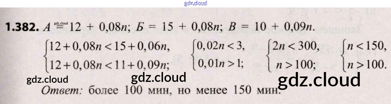 Ответ на задание 1.382 Учебник Алгебра за 8 (восьмой) класс Арефьева, Пирютко 2018