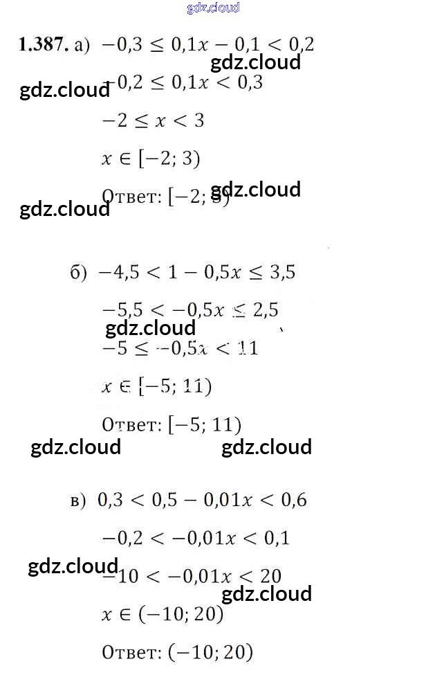 Ответ на задание 1.387 Учебник Алгебра за 8 (восьмой) класс Арефьева, Пирютко 2018