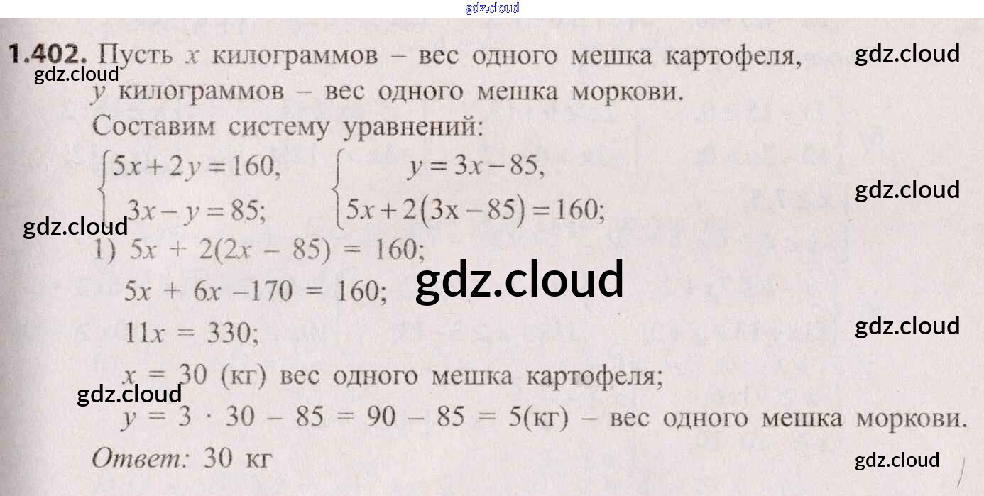 Ответ на задание 1.402 Учебник Алгебра за 8 (восьмой) класс Арефьева, Пирютко 2018