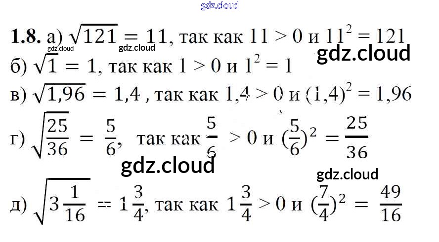 Ответ на задание 1.8 Учебник Алгебра за 8 (восьмой) класс Арефьева, Пирютко 2018 ФГОС онлайн и без номера телефона.