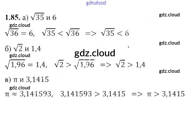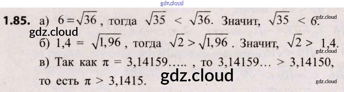 Ответ на задание 1.85 Учебник Алгебра за 8 (восьмой) класс Арефьева, Пирютко 2018