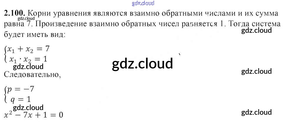Ответ на задание 2.100 Учебник Алгебра за 8 (восьмой) класс Арефьева, Пирютко 2018 ФГОС онлайн и без номера телефона.