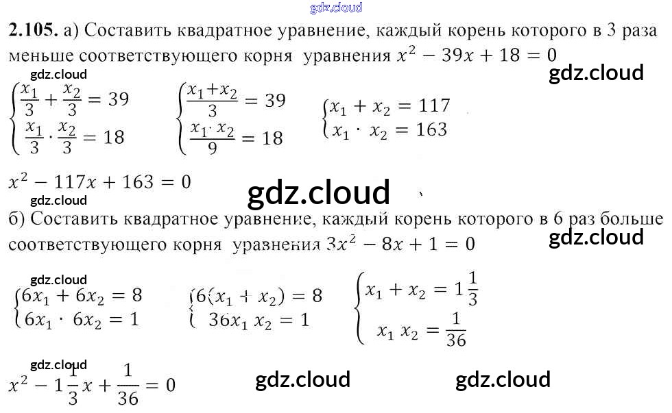 Ответ на задание 2.105 Учебник Алгебра за 8 (восьмой) класс Арефьева, Пирютко 2018 ФГОС онлайн и без номера телефона.