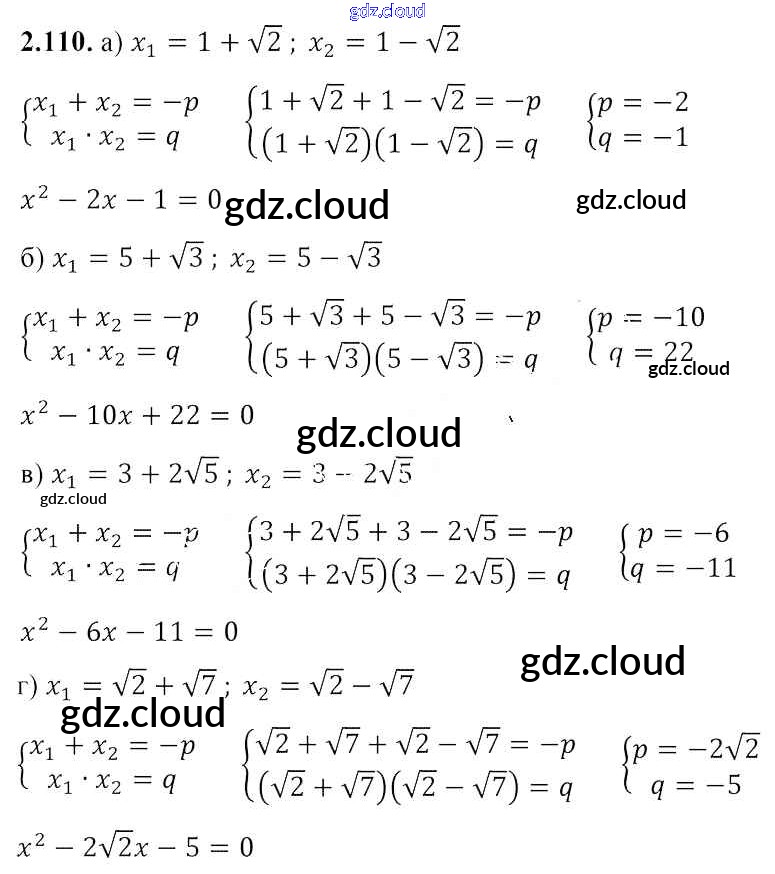 Ответ на задание 2.110 Учебник Алгебра за 8 (восьмой) класс Арефьева, Пирютко 2018 ФГОС онлайн и без номера телефона.