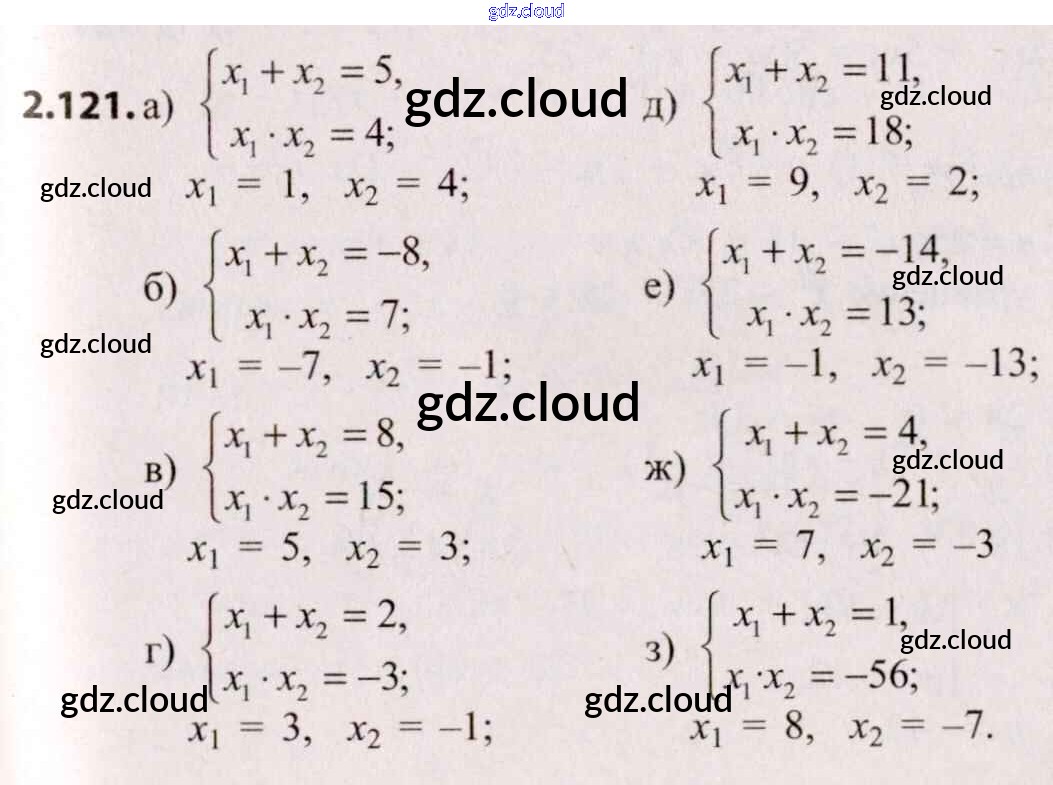 Ответ на задание 2.121 Учебник Алгебра за 8 (восьмой) класс Арефьева, Пирютко 2018