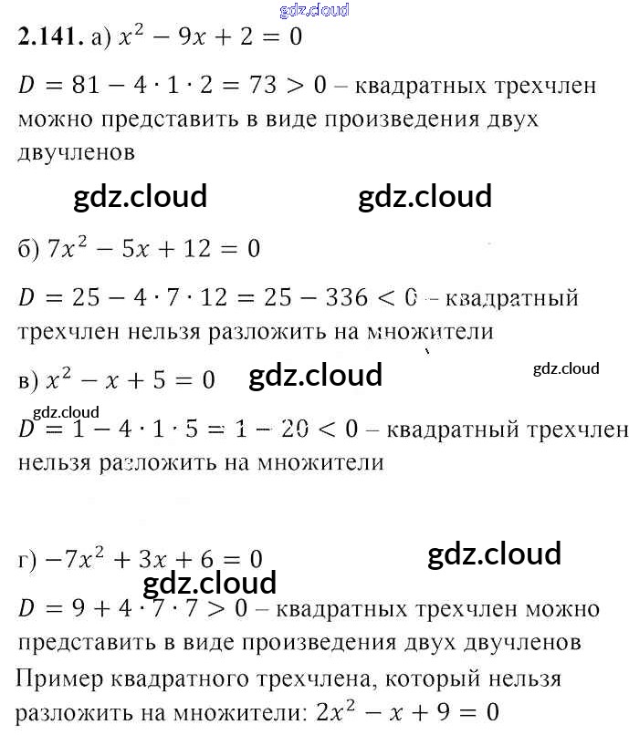 Ответ на задание 2.141 Учебник Алгебра за 8 (восьмой) класс Арефьева, Пирютко 2018 ФГОС онлайн и без номера телефона.