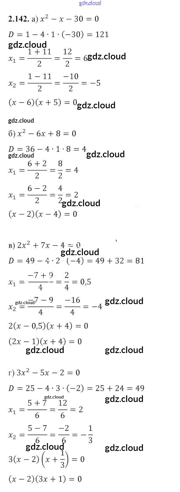 Ответ на задание 2.142 Учебник Алгебра за 8 (восьмой) класс Арефьева, Пирютко 2018 ФГОС онлайн и без номера телефона.