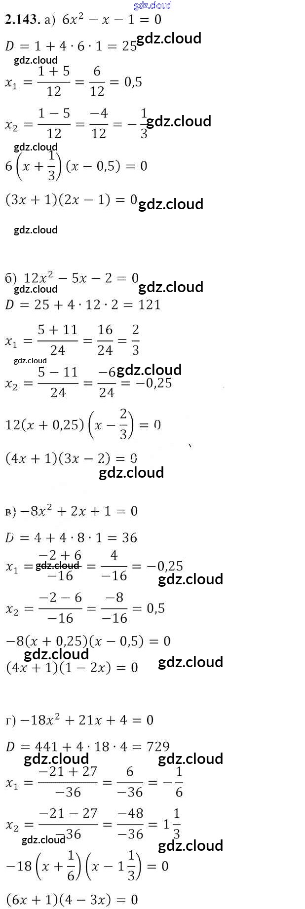 Ответ на задание 2.143 Учебник Алгебра за 8 (восьмой) класс Арефьева, Пирютко 2018 ФГОС онлайн и без номера телефона.