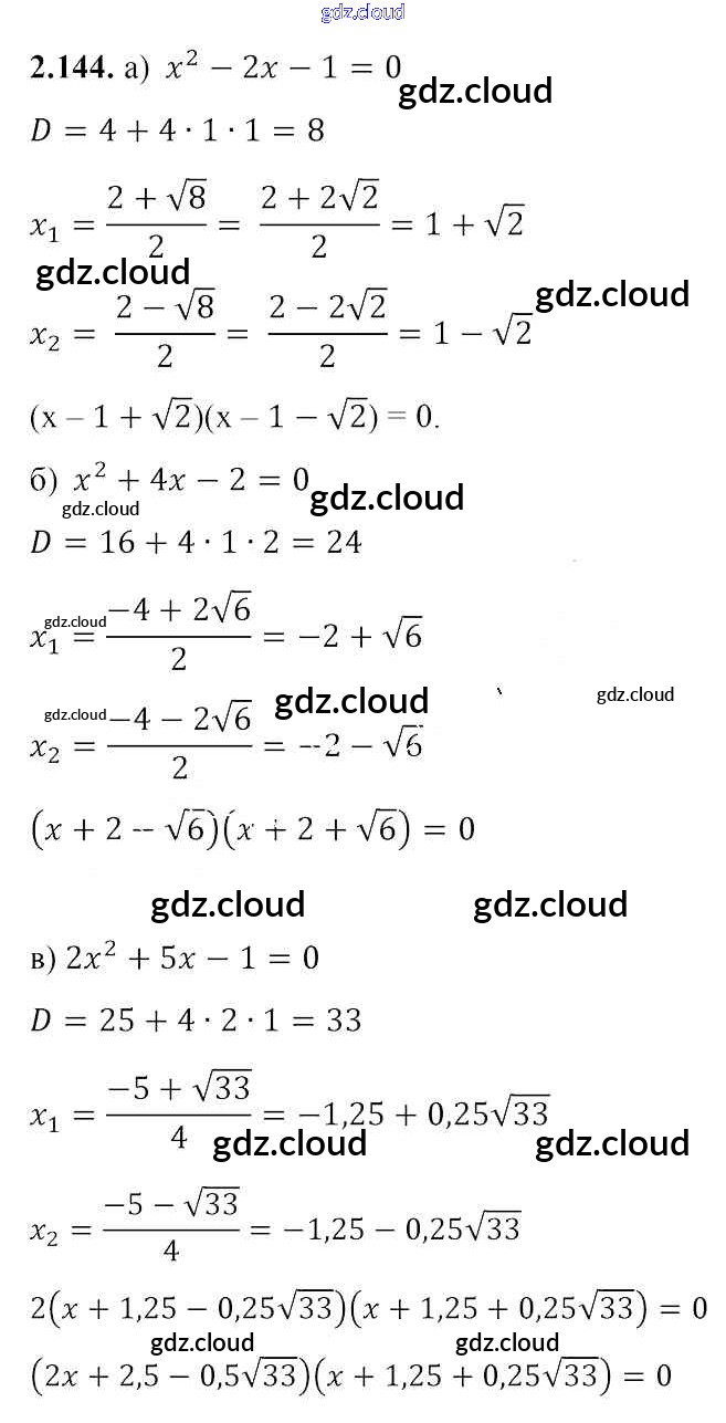 Ответ на задание 2.144 Учебник Алгебра за 8 (восьмой) класс Арефьева, Пирютко 2018 ФГОС онлайн и без номера телефона.