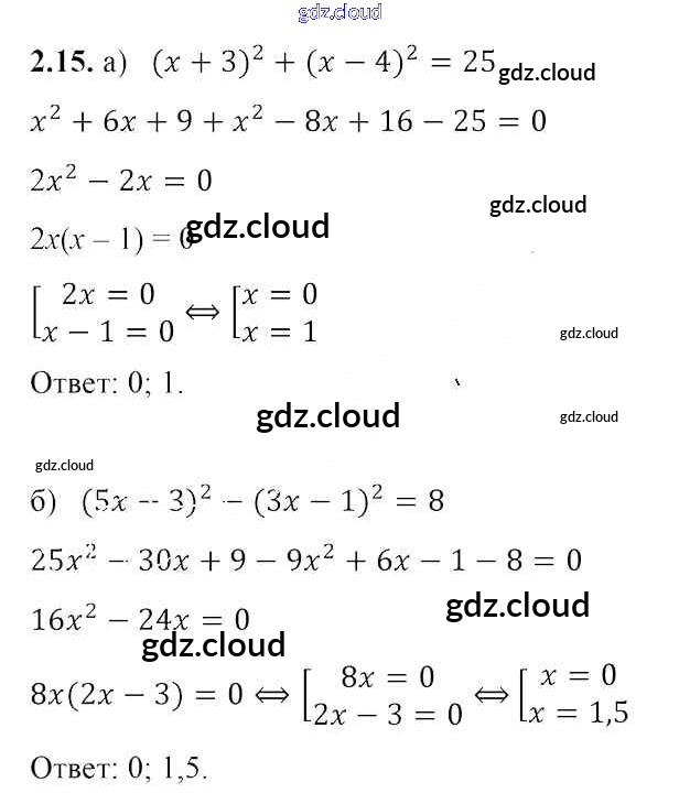 Ответ на задание 2.15 Учебник Алгебра за 8 (восьмой) класс Арефьева, Пирютко 2018 ФГОС онлайн и без номера телефона.