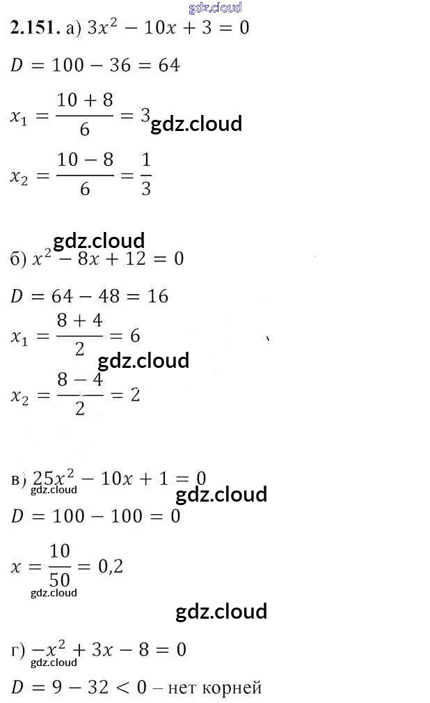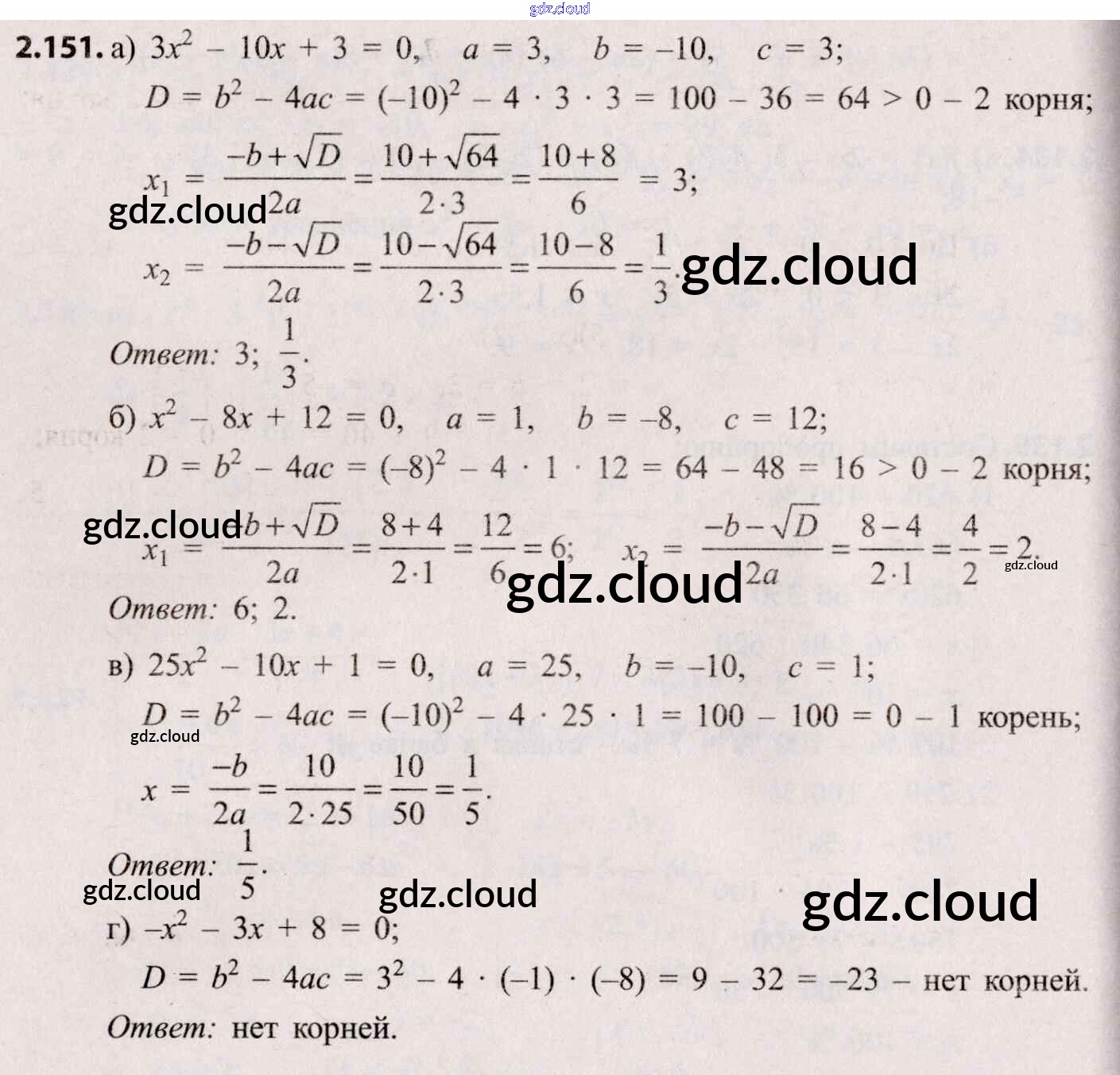 Ответ на задание 2.151 Учебник Алгебра за 8 (восьмой) класс Арефьева, Пирютко 2018