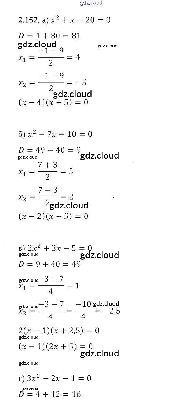 Ответ на задание 2.152 Учебник Алгебра за 8 (восьмой) класс Арефьева, Пирютко 2018