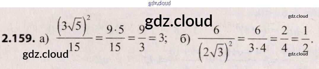 Ответ на задание 2.159 Учебник Алгебра за 8 (восьмой) класс Арефьева, Пирютко 2018