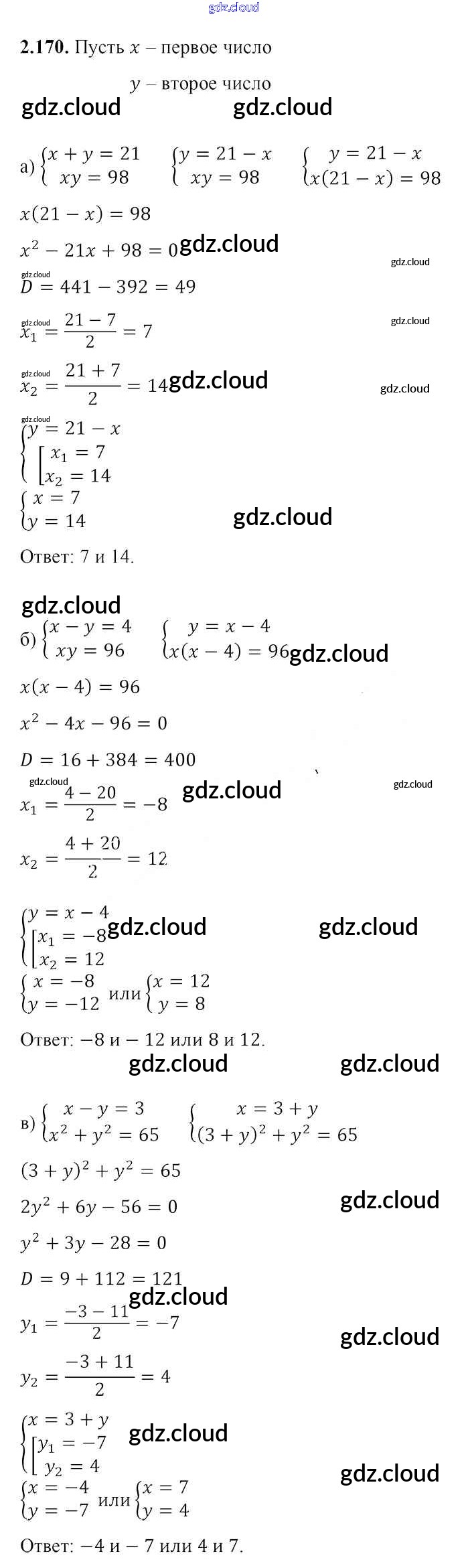 Ответ на задание 2.170 Учебник Алгебра за 8 (восьмой) класс Арефьева, Пирютко 2018 ФГОС онлайн и без номера телефона.