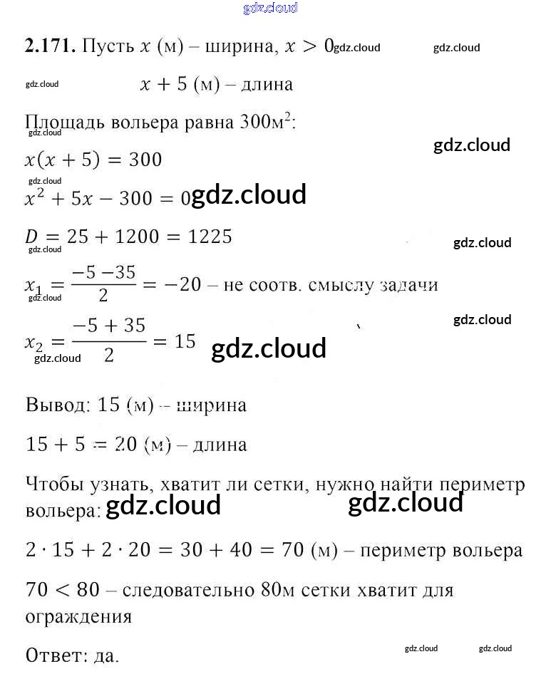 Ответ на задание 2.171 Учебник Алгебра за 8 (восьмой) класс Арефьева, Пирютко 2018 ФГОС онлайн и без номера телефона.