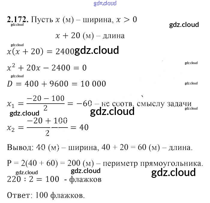 Ответ на задание 2.172 Учебник Алгебра за 8 (восьмой) класс Арефьева, Пирютко 2018 ФГОС онлайн и без номера телефона.