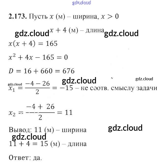 Ответ на задание 2.173 Учебник Алгебра за 8 (восьмой) класс Арефьева, Пирютко 2018 ФГОС онлайн и без номера телефона.