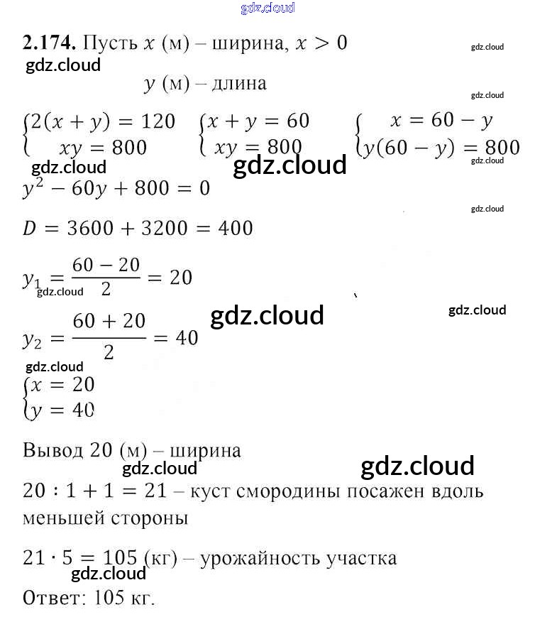 Ответ на задание 2.174 Учебник Алгебра за 8 (восьмой) класс Арефьева, Пирютко 2018 ФГОС онлайн и без номера телефона.