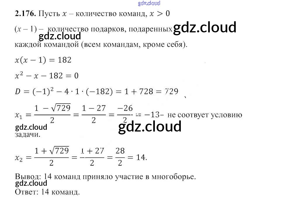 Ответ на задание 2.176 Учебник Алгебра за 8 (восьмой) класс Арефьева, Пирютко 2018 ФГОС онлайн и без номера телефона.