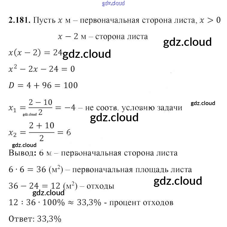 Ответ на задание 2.181 Учебник Алгебра за 8 (восьмой) класс Арефьева, Пирютко 2018 ФГОС онлайн и без номера телефона.