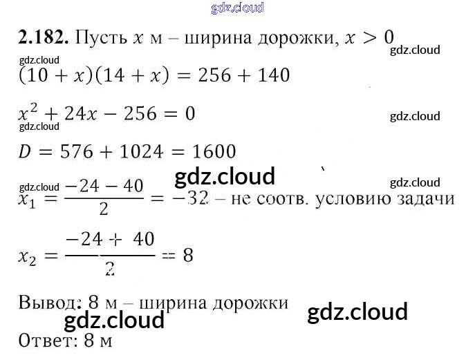 Ответ на задание 2.182 Учебник Алгебра за 8 (восьмой) класс Арефьева, Пирютко 2018 ФГОС онлайн и без номера телефона.