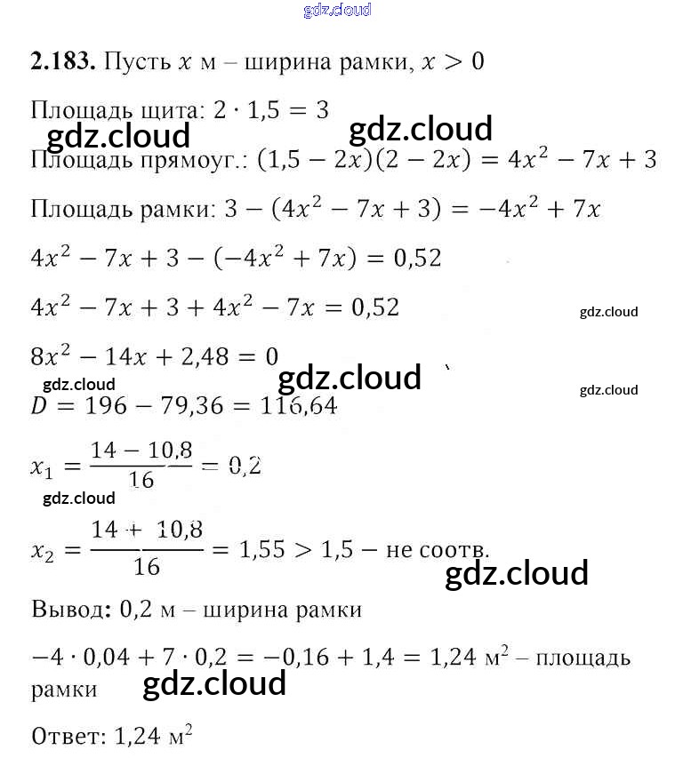 Ответ на задание 2.183 Учебник Алгебра за 8 (восьмой) класс Арефьева, Пирютко 2018 ФГОС онлайн и без номера телефона.