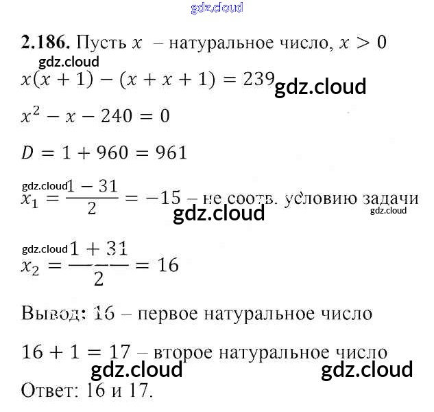 Ответ на задание 2.186 Учебник Алгебра за 8 (восьмой) класс Арефьева, Пирютко 2018 ФГОС онлайн и без номера телефона.