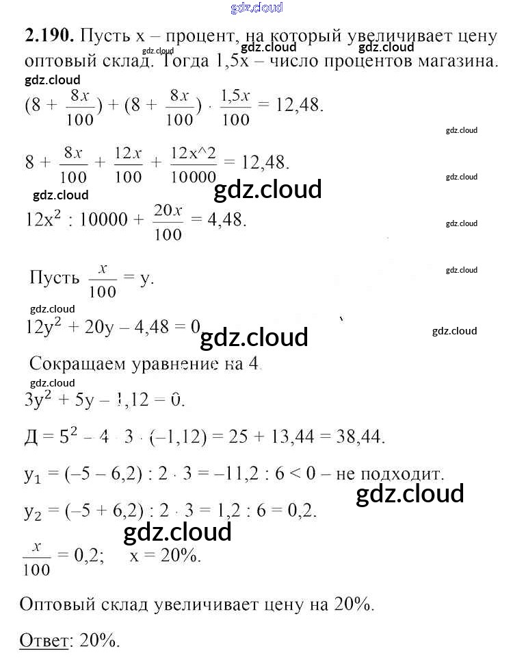 Ответ на задание 2.190 Учебник Алгебра за 8 (восьмой) класс Арефьева, Пирютко 2018 ФГОС онлайн и без номера телефона.